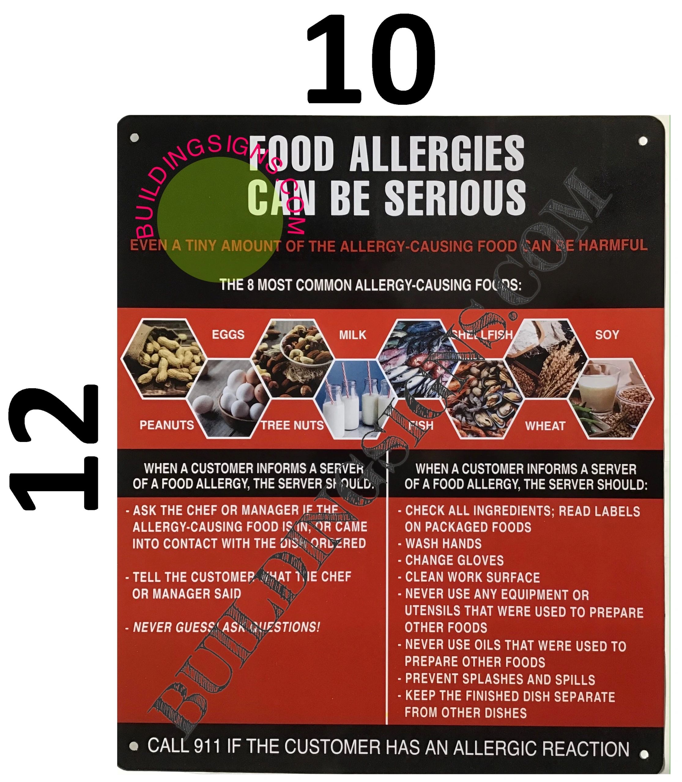 HPD SIGNFood Allergies Sign (ALUMINUM CONSUMER ADVISORY FOR NYC) DOB