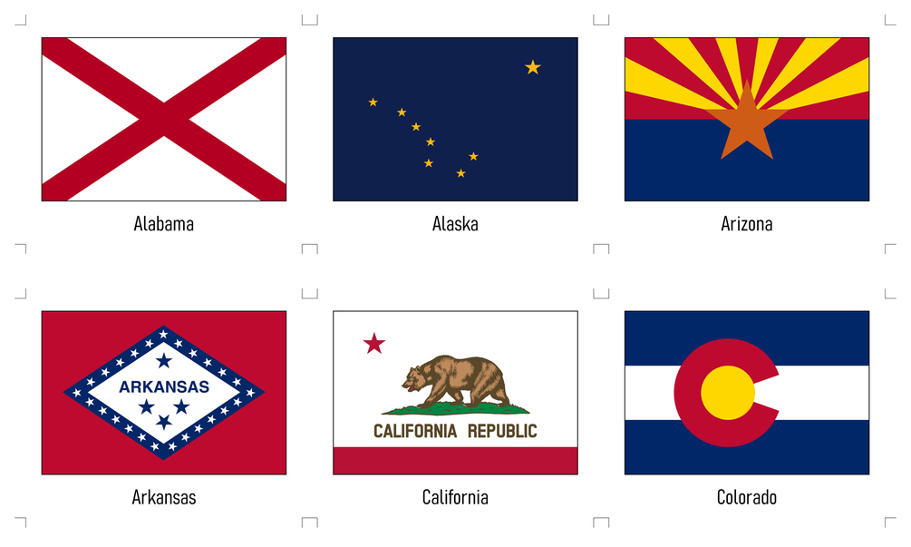 Printable, HighResolution 50 U.S. State Flags With Names And Crop